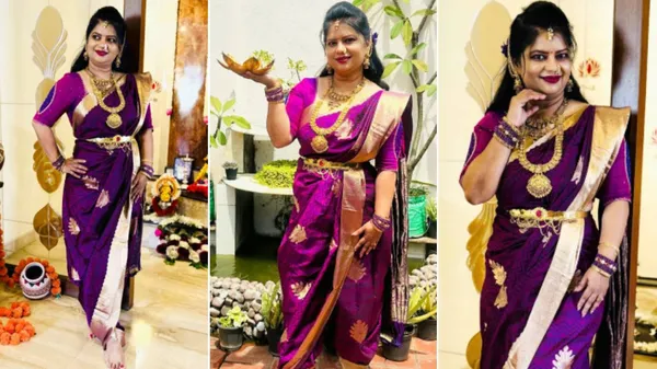 ನೇರಳೆ ಬಣ್ಣದ ಸೀರೆಯ ಸ್ಟೈಲಿಂಗ್