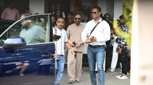 ಈ ಸಿನಿಮಾದ ಪ್ರಚಾರಕ್ಕಾಗಿ ನಟ ಕಮಲ್ ಹಾಸನ್ ಮುಂಬೈಗೆ ಬಂದಿದ್ದಾರೆ. ಅವರು ಮುಂಬೈಯ ಪ್ರಚಾರ ಕಾರ್ಯ ಮುಗಿಸಿ ಹೊರಬರುತ್ತಿರುವ ದೃಶ್ಯ ಸೋಶಿಯಲ್ ಮೀಡಿಯಾದಲ್ಲಿ ವೈರಲ್ ಆಗಿದೆ. ಅದರಲ್ಲಿ ನಟ ಕಮಲ್ ಹಾಸನ್ ಕ್ಯಾಶುವಲ್ ಕ್ರೀಮ್ ಕಲರ್ ಬಟ್ಟೆ ಧರಿಸಿದ್ದು ಸ್ಟೈಲ್ ಆಗಿ ಕಾಣಿಸಿಕೊಂಡಿದ್ದಾರೆ. ಇನ್ನೊಂದು ಚಿತ್ರದಲ್ಲಿ ನಟ ಸಿಲಂಬರಸ್ ಕೂಡ ಕಪ್ಪು ಬಣ್ಣದ ಸ್ಟೈಲಿಶ್ ವೆಸ್ಟರ್ನ್ ಲುಕ್ನಲ್ಲಿ ಫೋಟೊಗಳಿಗೆ ಪೋಸ್ ನೀಡಿದ್ದನ್ನು ಕಾಣಬಹುದು.