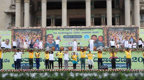 ಆಯುಷ್ ಇಲಾಖೆಯಿಂದ ಇಂದು ಯಶಸ್ವಿಯಾಗಿ 11ನೇ ವಿಶ್ವ ಯೋಗ ದಿನಾಚರಣೆಯನ್ನು ಆಚರಿಸಲಾಗಿದೆ. ರಾಜ್ಯದ 10 ಸಾವಿರ ಸ್ಥಳಗಳಲ್ಲಿ 5 ಲಕ್ಷಕ್ಕೂ ಹೆಚ್ಚು ಜನರಿಗೆ ಯೋಗಭ್ಯಾಸ ಮಾಡಲು ಸರ್ಕಾರ ಅನುವು ಮಾಡಿಕೊಟ್ಟಿತ್ತು. 45 ನಿಮಿಷಗಳ ಯೋಗ ಪ್ರಾತ್ಯಕ್ಷಿಕೆಯನ್ನು ಪ್ರದರ್ಶಿಸಲಾಯಿತು.