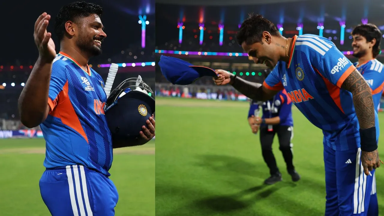 ವೆಸ್ಟ್ ಇಂಡೀಸ್ ವಿರುದ್ಧದ 2026ರ ಐಸಿಸಿ ಟಿ20 ವಿಶ್ವಕಪ್ ಟೂರ್ನಿಯ ಸೂಪರ್-8ರ ಪಂದ್ಯದಲ್ಲಿ ಮ್ಯಾಚ್ ವಿನ್ನಿಂಗ್ ಪ್ರದರ್ಶನವನ್ನು ತೋರಿದ ವಿಕೆಟ್ ಕೀಪರ್-ಬ್ಯಾಟ್ಸ್ಮನ್ ಸಂಜು ಸ್ಯಾಮ್ಸನ್ಗೆ ಭಾರತ ತಂಡದ ನಾಯಕ ಸೂರ್ಯಕುಮಾರ್ ಯಾದವ್ ವಿಶೇಷ ಗೌರವವನ್ನು ಸಲ್ಲಿಸಿದ್ದಾರೆ. ಭಾರತವನ್ನು ಗೆಲ್ಲಿಸಿ ಹಿಂತಿರುಗುತ್ತಿದ್ದ ಸಂಜುಗೆ ತಾವು ಧರಿಸಿದ್ದ ಕ್ಯಾಪ್ ತೆಗೆದು ಸೂರ್ಯಕುಮಾರ್ ಯಾದವ್ ಗೌರವ ಸಲ್ಲಿಸಿದರು.