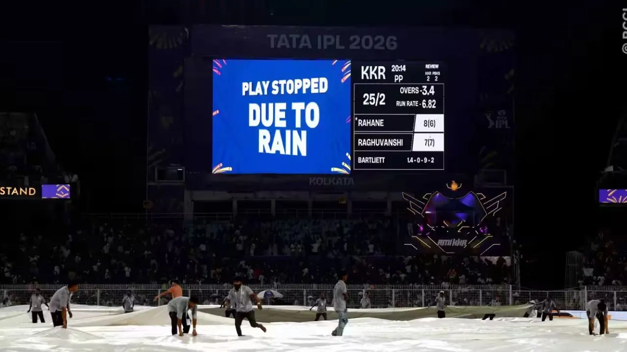 KKR vs PBKS Match Abondoned: ಕೋಲ್ಕತಾ ನೈಟ್ ರೈಡರ್ಸ್ ಹಾಗೂ ಪಂಜಾಬ್ ಕಿಂಗ್ಸ್ ತಂಡಗಳ ನಡುವಣ 2026ರ ಇಂಡಿಯನ್ ಪ್ರೀಮಿಯರ್ ಲೀಗ್ ಟೂರ್ನಿಯ ಸೋಮವಾರದ ಪಂದ್ಯ ಮಳೆಗೆ ಬಲಿಯಾಯಿತು. ಈ ಪಂದ್ಯದಲ್ಲಿ ಕೇವಲ 3.4 ಓವರ್ಗಳನ್ನು ಮಾತ್ರ ಬೌಲ್ ಮಾಡಲಾಯಿತು. ಅಂತಿಮಾಗಿ ಎರಡೂ ತಂಡಳಿಗೆ ಒಂದೊಂದು ಅಂಕವನ್ನು ನೀಡಲಾಗಿದೆ.