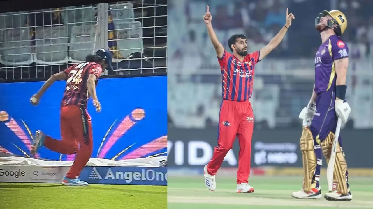 ಅಲ್ಲಿ ಫೀಲ್ಡಿಂಗ್ನಲ್ಲಿದ್ದ ದಿಗ್ವೇಶ್ ರಾಥಿ ಆರಂಭದಲ್ಲಿ ಬಾಲ್ನ ದಿಕ್ಕನ್ನು ಸರಿಯಾಗಿ ಅಂದಾಜಿಸಲು ವಿಫಲರಾದರು ಮತ್ತು ಬೌಂಡರಿ ಲೈನ್ನಿಂದ ಒಳಗೆ ನಡೆದು ಬಂದರು. ತಮ್ಮ ತಪ್ಪನ್ನು ಅರಿತ ತಕ್ಷಣ ಹಿಂದಕ್ಕೆ ಓಡುತ್ತಾ ಬೌಂಡರಿ ರೋಪ್ ಕಡೆಗೆ ಹಿಂತಿರುಗಿ ಕ್ಯಾಚ್ ಪೂರ್ಣಗೊಳಿಸಲು ಪ್ರಯತ್ನಿಸಿದರು.