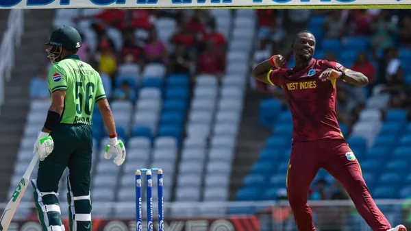 ಗುರಿಯನ್ನು ಹಿಂಬಾಲಿಸಿದ ಪಾಕಿಸ್ತಾನ ತಂಡಕ್ಕೆ ಆರಂಭದಲ್ಲಿಯೇ ಜೇಡನ್ ಸೀಲ್ಸ್ ಆಘಾತ ನೀಡಿದ್ದರು. ಪಾಕ್ ತಂಡದ ಆರಂಭಿಕರಾದ ಸೈಯಮ್ ಆಯುಬ್ ಹಾಗೂ ಅಬ್ದುಲ್ಲಾ ಶಫಿಕ್ ಅವರನ್ನು ಶೂನ್ಯಕ್ಕೆ ವಿಕೆಟ್ ಕಿತ್ತ ಸೀಲ್ಸ್, ನಂತರ ಕ್ರಮವಾಗಿ ಮೊಹಮ್ಮದ್ ರಿಝ್ವಾನ್ ಹಾಗೂ ಬಾಬರ್ ಆಝಮ್ (9) ಅವರನ್ನು ಔಟ್ ಮಾಡಿದರು. ಆ ಮೂಲಕ ಕೇವಲ 24 ರನ್ಗಳಿಗೆ ಪಾಕಿಸ್ತಾನ ತಂಡ 4 ವಿಕೆಟ್ಗಳನ್ನು ಕಳೆದುಕೊಂಡಿತು.