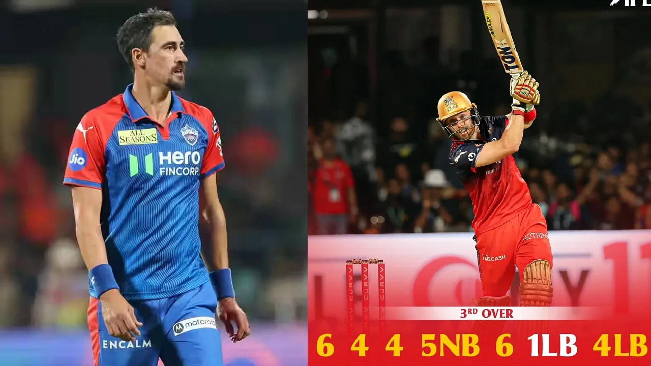 RCB vs DC: '6 4 4 4nb 6 1 4'-ಮಿಚೆಲ್ ಸ್ಟಾರ್ಕ್ ಓವರ್ಗೆ 30 ರನ್ ಚಚ್ಚಿದ ಆರ್ಸಿಬಿ!