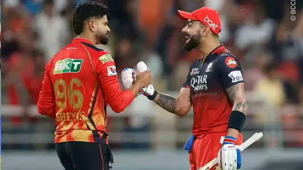 ಆರ್ಸಿಬಿ ತಂಡದ ಇನಿಂಗ್ಸ್ನ 19ನೇ ಓವರ್ ಅನ್ನು ಪಂಜಾಬ್ ಕಿಂಗ್ಸ್ ತಂಡದ ನೆಹಾಲ್ ವಧೇರಾ ಎಸೆದರು. ತಮ್ಮ ಓವರ್ನ ಐದನೇ ಎಸೆತದಲ್ಲಿ ಜಿತೇಶ್ ಶರ್ಮಾ ಅದ್ಭುತವಾದ ಸಿಕ್ಸ್ ಬಾರಿಸಿ ತಮ್ಮ ತಂಡವನ್ನು ಪಂದ್ಯ ಗೆಲ್ಲುವಂತೆ ಮಾಡಿದರು. ಜಿತೇಶ್ ಸಿಕ್ಸ್ ಹೊಡೆದ ತಕ್ಷಣ, ನಾನ್-ಸ್ಟ್ರೈಕರ್ ಎಂಡ್ನಲ್ಲಿ ನಿಂತಿದ್ದ ವಿರಾಟ್ ಕೊಹ್ಲಿ, ಶ್ರೇಯಸ್ ಅಯ್ಯರ್ ಅವರನ್ನು ನೋಡಿ ಸಂಭ್ರಮಿಸಿದರು ಮತ್ತು ಅವರನ್ನು ಕೀಟಲೆ ಮಾಡಿದರು. ಆ ಮೂಲಕ ಆರ್ಸಿಬಿ ವಿರುದ್ಧ ಬೆಂಗಳೂರಿನಲ್ಲಿ ಗೆದ್ದ ಬಳಿಕ ಫ್ಯಾನ್ಸ್ ಕಡೆ ನೋಡಿ ಕೈ ಸನ್ನೆ ಮಾಡಿದ್ದ ಶ್ರೇಯಸ್ ಅಯ್ಯರ್ಗೆ ಕೊಹ್ಲಿ ನಗು ಮುಖದಿಂದಲೇ ತಿರುಗೇಟು ನೀಡಿದರು.
