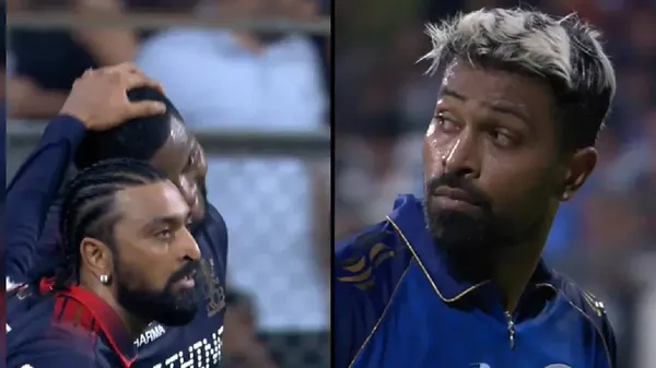 ಹಾರ್ದಿಕ್ ಬ್ಯಾಟಿಂಗ್ ವೇಳೆ ಅಣ್ಣನಾದ ಕೃನಾಲ್ ಬೌನ್ಸರ್ ಮೂಲಕ ಸ್ವಾಗತಿಸಿದರು. ಜಾಕೋಬ್ ಡಫಿಗೆ ಹಾರ್ದಿಕ್ ಔಟಾದಾಗ ಕ್ರುನಾಲ್ ತೀವ್ರವಾಗಿ ಆಚರಿಸುತ್ತಿರುವುದು ಕಂಡುಬಂದಿತು. ಕೃಣಾಲ್ ಸಂಭ್ರಮಾಚರಣೆ ಕಂಡು ಹಾರ್ದಿಕ್ ದಿಟ್ಟಿಸಿ ನೋಡುವ ದೃಶ್ಯವನ್ನು ಕಾಣಬಹುದು. ಮಾತ್ರವಲ್ಲದೆ ಪಂದ್ಯದ ಮುಕ್ತಾಯದ ಬಳಿಕ ಪರಸ್ಪರ ಕೈಕುಲುಕುವುದನ್ನು ತಪ್ಪಿಸಿದರು.