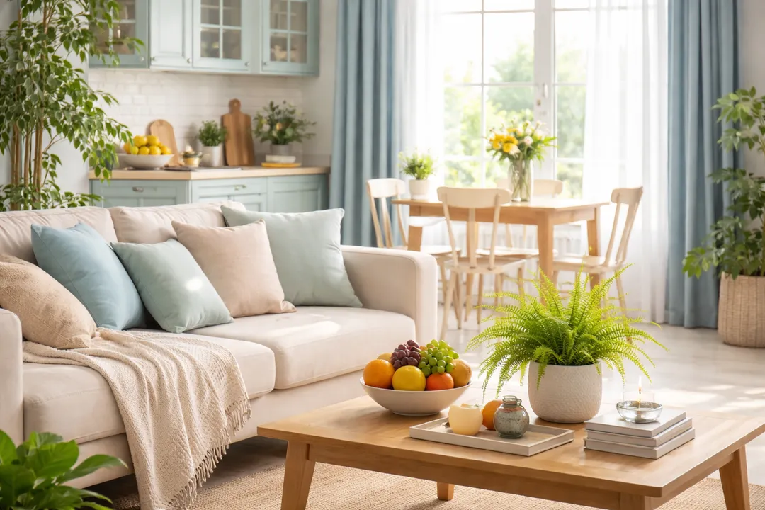 ಹಗುರ ಬಣ್ಣದ ಸೋಫಾ, ಕುರ್ಚಿಗಳು ಮತ್ತು ಮನೆ ಅಲಂಕಾರಗಳು ಮನಸ್ಸಿಗೆ ಹಗುರವಾದ ಅನುಭವವನ್ನು ನೀಡುತ್ತವೆ. ಗಾಢ ಬಣ್ಣಗಳು ಕೆಲವೊಮ್ಮೆ ಒತ್ತಡವನ್ನು ಹೆಚ್ಚಿಸಬಹುದು.