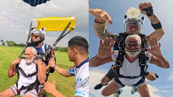 15,000 ಅಡಿಯಿಂದ ಸ್ಕೈ ಡೈವ್ ಮಾಡಿದ ಅಜ್ಜ