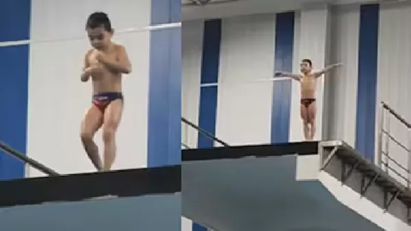 ಇನ್ಸ್ಟಾಗ್ರಾಮ್ ವಿಡಿಯೊದಲ್ಲಿ, ಬಾಲಕ (ಡೈವರ್) ಆತ್ಮವಿಶ್ವಾಸದಿಂದ ಪ್ಲಾಟ್ಫಾರ್ಮ್ಗೆ ಹೆಜ್ಜೆ ಹಾಕಿದ್ದಾನೆ. ಎಚ್ಚರಿಕೆಯಿಂದ ಪರಿಶೀಲಿಸಿ, ತನ್ನ ಕೈಗಳನ್ನು ಮೇಲೆ, ಕೆಳಗೆ ಮಾಡುತ್ತಾ ಪರಿಪೂರ್ಣ ನಿಲುವನ್ನು ತೆಗೆದುಕೊಂಡು ನಂತರ ಪೂಲ್ಗೆ ಹಾರಿದ್ದಾನೆ.