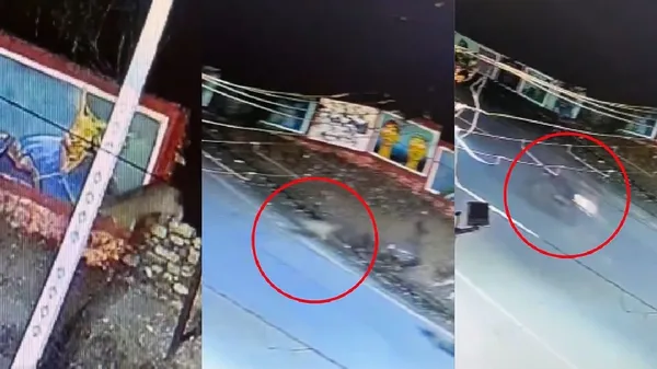 ಜೈಪುರ: ಕಾಡಿನಲ್ಲಿ ಇರಬೇಕಾಗಿದ್ದ ಹುಲಿ, ಚಿರತೆಗಳು ಈಗ ಆಹಾರ ಹುಡುಕಿಕೊಂಡು ಹಳ್ಳಿಗಳಲ್ಲಿ ಓಡಾಡುತ್ತಿವೆ. ಹುಲಿಯೊಂದು ಮನೆಯೊಳಗೆ ನುಗ್ಗಿದ್ದು, ಚಿರತೆ ದಾರಿಹೋಕನ ಮೇಲೆ ದಾಳಿ ಮಾಡಿದ್ದು ಇಂತಹ ಘಟನೆಗಳು ಸಾಕಷ್ಟು ನಡೆದಿವೆ. ಇತ್ತೀಚೆಗೆ ರಾಜಸ್ಥಾನದ ಉದಯಪುರದ ಮುಖ್ಯ ರಸ್ತೆಯ ಕಡೆಗೆ ಚಿರತೆಯೊಂದು ಇದ್ದಕ್ಕಿದ್ದಂತೆ ಓಡಿ ಬಂದ ಪರಿಣಾಮ ಹಾಲು ಮಾರುವವನ ಬೈಕ್ಗೆ ಡಿಕ್ಕಿ ಹೊಡೆದಿದೆ. ಇದರಿಂದ ಚಿರತೆ ಗಾಯಗೊಂಡಿದಲ್ಲದೇ ಹಾಲು ಮಾರುವವನು ಕೆಳಗೆ ಬಿದ್ದು ಹಾಲೆಲ್ಲಾ ಚೆಲ್ಲಿ ಹೋಗಿದೆ. ಈ ದೃಶ್ಯ ಸಿಸಿಟಿವಿಯಲ್ಲಿ ಸೆರೆಯಾಗಿದ್ದು ಸೋಶಿಯಲ್ ಮೀಡಿಯಾಗಳಲ್ಲಿ ವೈರಲ್(Viral Video) ಆಗಿದೆ.