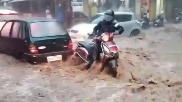 ವೈರಲ್ ಆದ ವಿಡಿಯೊದಲ್ಲಿ ಸ್ಕೂಟಿಯಲ್ಲಿದ್ದ ವ್ಯಕ್ತಿಯೊಬ್ಬ ನೀರು ತುಂಬಿದ ರಸ್ತೆಯಲ್ಲಿ ಸಿಲುಕಿಕೊಂಡಿರುವುದನ್ನು ಸೆರೆಹಿಡಿಯಲಾಗಿದೆ. ನೀರಿನ ಹರಿವು ಎಷ್ಟು ವೇಗವಾಗಿತ್ತೆಂದರೆ, ಆ ವ್ಯಕ್ತಿ ಪ್ರವಾಹದ ಜೊತೆಗೆ ಕೊಚ್ಚಿ ಹೋಗಿದ್ದಾನೆ. ನೀರು ಅವನ ಸ್ಕೂಟರ್ ಜೊತೆಗೆ ಅವನನ್ನು ಕೊಚ್ಚಿಕೊಂಡು ಹೋಗಿದೆ. ಪ್ರವಾಹದ ನೀರಿನಲ್ಲಿ ಆ ವ್ಯಕ್ತಿ ತನ್ನನ್ನು ತಾನು ಸಮತೋಲನ ಮಾಡಿಕೊಳ್ಳಲು ಸಾಧ್ಯವಾಗಲಿಲ್ಲ. ಈ ಘಟನೆಯನ್ನು ನೋಡುಗರೊಬ್ಬರು ರೆಕಾರ್ಡ್ ಮಾಡಿದ್ದು, ಘಟನೆಯ ವಿಡಿಯೊ ಸೋಶಿಯಲ್ ಮೀಡಿಯಾದಲ್ಲಿ ವೈರಲ್ ಆಗಿದೆ.