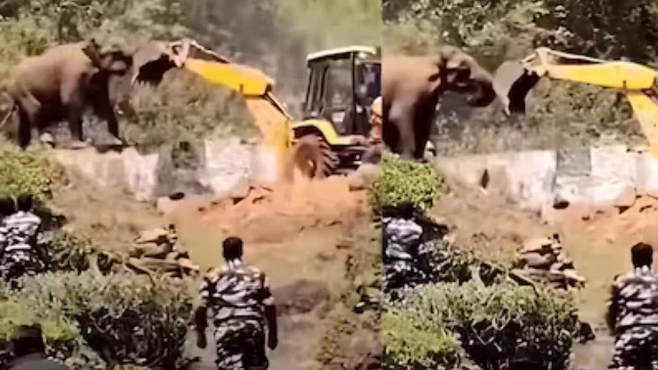 ಅರಣ್ಯ ರಕ್ಷಣೆಗಾಗಿ ಜೆಸಿಬಿ ಅಡ್ಡಗಟ್ಟಿದ ಆನೆ -