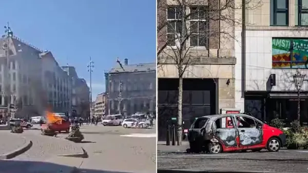 ಆಮ್ಸ್ಟರ್ಡ್ಯಾಮ್:ಆಮ್ಸ್ಟರ್ಡ್ಯಾಮ್ ಸ್ಕ್ವೇರ್ನಲ್ಲಿ ಇತ್ತೀಚೆಗೆ ಕಾರೊಂದು ಸ್ಫೋಟಗೊಂಡು ಹೊತ್ತಿ ಉರಿದಿದೆ.ಈ ಘಟನೆಯ ದೃಶ್ಯವನ್ನು ಸೋಶಿಯಲ್ ಮೀಡಿಯಾದಲ್ಲಿ ಪೋಸ್ಟ್ ಮಾಡಿಲಾಗಿದ್ದು, ಇದು ಈಗ ವೈರಲ್(Viral Video) ಆಗಿದೆ.ವಿಡಿಯೊದಲ್ಲಿ ಸ್ಕ್ವೇರ್ನ ಆಗ್ನೇಯ ಮೂಲೆಯಲ್ಲಿರುವ ರಾಷ್ಟ್ರೀಯ ಸ್ಮಾರಕದ ಬಳಿ ಇರುವ ಕೆಂಪು ಕಾರೊಂದು ಹೊತ್ತಿ ಉರಿಯುವುದು ಸೆರೆಯಾಗಿದೆ. ಈ ಭಯಾನಕ ದೃಶ್ಯ ಕಂಡು ನೆಟ್ಟಿಗರು ಕೂಡ ಶಾಕ್ ಆಗಿದ್ದಾರೆ.ಈ ಘಟನೆಗೆ ಸಂಬಂಧಿಸಿದಂತೆ ಕಾರಿನ ಡ್ರೈವರ್ ಉದ್ದೇಶಪೂರ್ವಕವಾಗಿ ಕಾರಿಗೆ ಬೆಂಕಿಯನ್ನು ಹಚ್ಚಿದ್ದಾನೆ ಎಂಬ ಅನುಮಾನ ಪೊಲೀಸರಲ್ಲಿ ಮೂಡಿದೆ.