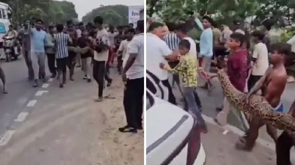 ಜಹಾಂಗೀರಾಬಾದ್ ಕೊಟ್ವಾಲಿ ಪ್ರದೇಶದ ಡುಂಗ್ರಾ ಜಾಟ್ ಗ್ರಾಮದ ಬಳಿ ಹೆಬ್ಬಾವೊಂದು ಇದ್ದಕ್ಕಿದ್ದಂತೆ ಕಾಣಿಸಿಕೊಂಡಾಗ ಗ್ರಾಮಸ್ಥರು ಭಯಭೀತರಾಗಿದ್ದರು.ನಂತರ ಮಕ್ಕಳ ಗುಂಪೊಂದು ಹೆಬ್ಬಾವನ್ನು ಬರಿ ಕೈಯಲ್ಲಿ ಹಿಡಿದುಕೊಂಡು ಕಾಡಿಗೆ ಬಿಟ್ಟು ಬಂದಿದ್ದಾರೆ.