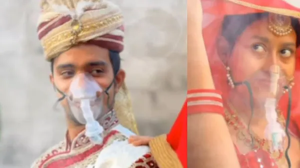 ವೈರಲ್ ಆದ ವಿಡಿಯೋದಲ್ಲಿ ದೆಹಲಿಯ ವಾಯು ಮಾಲಿನ್ಯದ ವಿಚಾರದ ಬಗ್ಗೆ ಜಾಗೃತಿ ಮೂಡಿಸ ಲಾಗಿದ್ದನ್ನು ಕಾಣಬಹುದು. ಸದ್ಯದ ಸ್ಥಿತಿಯಲ್ಲಿ ದೆಹಲಿಯಲ್ಲಿ ನವ ದಂಪತಿಗಳು ಮಾಲಿನ್ಯ ನಿಯಂತ್ರಣದ ನಡುವೆ ಈ ರೀತಿ ಫೋಟೊ ಶೂಟ್ ಮಾಡಿಸ ಬಹುದು ಎಂಬರ್ಥದಲ್ಲಿ ವಿಡಿಯೋ ಪೋಸ್ಟ್ ಮಾಡಲಾಗಿದೆ. ಇಬ್ಬರು ಆಕ್ಸಿಜನ್ ಮಾಸ್ಕ್ ಧರಿಸಿ ಕೊಂಡಿರುವುದನ್ನು ಕಾಣಬಹುದು. ಮದುವೆ ಫೋಟೊ ಶೂಟ್ ಮಾಡಿಸುವಾಗ ಗುಲಾಬಿ, ಸಂಪಿಗೆ ಹೂವಿನ ಮಾಲೆ ಮಾಡುವುದು ನೋಡಿದ್ದೇವೆ ಆದರೆ ಇಲ್ಲಿ ಹೂವುಗಳ ಬದಲಿಗೆ ಔಷಧಿಗಳ ರಾಪ್ ಬಳಸಿ ವಧುವಿನ ಮೇಲೆ ಅದನ್ನು ಸುರಿಯಲಾಗಿದೆ.