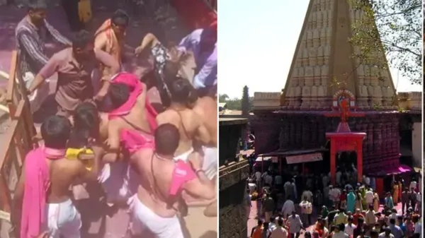 ಮಹಾರಾಷ್ಟ್ರ: ದೇವಾಲಯವೊಂದರಲ್ಲಿ ಭಕ್ತರ ಮೇಲೆ ಪುರೋಹಿತರು ಹಲ್ಲೆ ನಡೆಸಿರುವ ಘಟನೆ ಮಹಾರಾಷ್ಟ್ರದ ಕೊಲ್ಹಾಪುರದದಲ್ಲಿ ನಡೆದಿದೆ. ಮನಸ್ಸಿನ ಶಾಂತಿಗಾಗಿ ದೇವಾಲಯಗಳಿಗೆ ಜನರು ಭೇಟಿ ನೀಡುತ್ತಾರೆ. ಆದರೆ ಅಲ್ಲೇ ಅವರು ಮನಸ್ಸಿನ ಶಾಂತಿ ಕಳೆದುಕೊಳ್ಳುವಂತ ಪರಿಸ್ಥಿತಿ ಎದುರಾದ ಘಟನೆ ಕೊಲ್ಹಾಪುರದ ಜ್ಯೋತಿಬಾ ದೇವಾಲಯದಲ್ಲಿ ನಡೆದಿದೆ. ಭಾನುವಾರ ಬೆಳಗ್ಗೆ ಈ ಘಟನೆ ನಡೆದಿದ್ದು, ಪುರೋಹಿತರು ಭಕ್ತರ ಮೇಲೆ ಹಲ್ಲೆ ನಡೆಸಿರುವ ವಿಡಿಯೊ ಸಾಮಾಜಿಕ ಮಾಧ್ಯಮಗಳಲ್ಲಿ ವೈರಲ್ ಆಗಿದೆ.