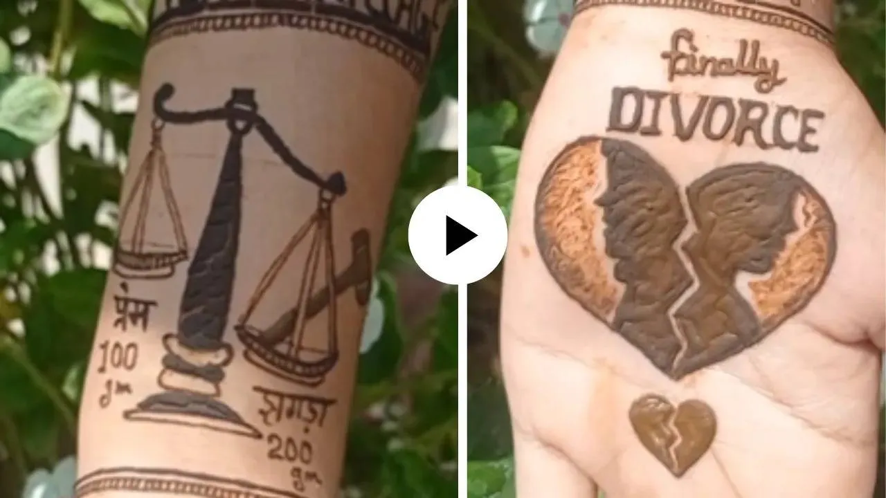 ನವದೆಹಲಿ: ಒಂದು ಕಾಲದಲ್ಲಿ ಡಿವೋರ್ಸ್ ಅನ್ನು ಬಹಳ ದುಃಖಕರ ಸಂಗತಿ ಎಂದು ಪರಿಗಣಿಸಲಾಗಿತ್ತು.ಆದರೆ ಇಂದಿನ ಕಾಲದಲ್ಲಿ ಡಿವೋರ್ಸ್ ಪಡೆದು ಅದನ್ನು ಖುಷಿಯಿಂದ ಸೆಲೆಬ್ರೆಟ್ ಮಾಡುತ್ತಾರೆ.ಇದಕ್ಕೆ ಸಂಬಂಧಪಟ್ಟ ವಿಡಿಯೊ ಕೂಡ ಸೋಶಿಯಲ್ ಮೀಡಿಯಾದಲ್ಲಿ ಆಗಾಗ ವೈರಲ್ ಆಗುತ್ತಿರುತ್ತದೆ. ಇಲ್ಲೊಬ್ಬಳು ಮಹಿಳೆ ಡಿವೋರ್ಸ್ ಪಡೆದ ನಂತರ ಕೈಗೆ ಮೆಹೆಂದಿ ಹಾಕಿಕೊಂಡು ಖುಷಿಯಿಂದ ಪಾರ್ಟಿ ಮಾಡುವ ಮೂಲಕ ಸೆಲೆಬ್ರೆಟ್ ಮಾಡಿದ್ದಾಳೆ. ಈ ವಿಡಿಯೊ ಈಗ ಸೋಶಿಯಲ್ ಮೀಡಿಯಾದಲ್ಲಿ ಸಿಕ್ಕಾಪಟ್ಟೆ ವೈರಲ್(Viral Video) ಆಗಿದ್ದು, ನೆಟ್ಟಿಗರು ಶಾಕ್ ಆಗಿದ್ದಾರೆ. ವೈರಲ್ ಆದ ವಿಡಿಯೊದಲ್ಲಿ ಆಕೆ ಕೈಗೆ ಹಾಕಿದ ಮೆಹಂದಿ ಡಿಸೈನ್ ಬ್ರೈಡಲ್ ಮೆಹೆಂದಿ ಡಿಸೈನ್ ಆಗಿರಲಿಲ್ಲ. ಬದಲಾಗಿ, ಆ ಮೆಹಂದಿ ಡಿಸೈನಲ್ಲಿ "100 ಗ್ರಾಂ ಪ್ರೀತಿ", "200 ಗ್ರಾಂ ಜಗಳ", ಮತ್ತು ನ್ಯಾಯದ ತಕ್ಕಡಿಗೆ ಸಂಬಂಧಪಟ್ಟ ಚಿತ್ರಗಳಿತ್ತು.