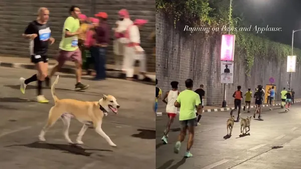ಅಥ್ಲೀಟ್ಗಳು ಬೆವರು ಸುರಿಸುತ್ತಾ ಓಡುತ್ತಿದ್ದರೆ ಈ ಶ್ವಾನಗಳು ಯಾವುದೇ ಒತ್ತಡವಿಲ್ಲದೆ, ಆರಾಮಾವಾಗಿ ಅವರ ವೇಗಕ್ಕೆ ಸರಿಯಾಗಿಯೇ ಓಡಿವೆ. ಈ ದೃಶ್ಯವು ಸ್ಪರ್ಧೆಯ ನಡುವೆ ಅಪರೂಪದ ಸಹಬಾಳ್ವೆ ಸಂದೇಶವನ್ನು ಜಗತ್ತಿಗೆ ನೀಡಿದೆ. ಆದರೆ ಇವುಗಳ ಉತ್ಸಾಹ ಮಾತ್ರ ಮ್ಯಾರಾಥಾನ್ ಓಟಗಾರರಿಗಿಂತ ಕಡಿಮೆಯೇನೂ ಇರಲಿಲ್ಲ. ಈ ದೃಶ್ಯವು ಬಹಳಷ್ಟು ನೆಟ್ಟಿಗರ ಗಮನ ಸೆಳೆದಿದೆ