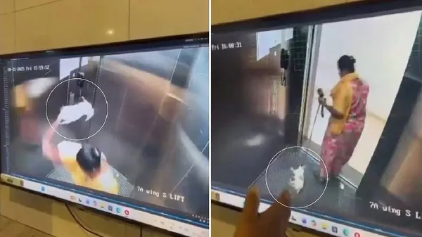 ಬೆಂಗಳೂರು: ಇತ್ತೀಚೆಗೆ ಪ್ರಾಣಿ ಹಿಂಸೆ ಮಾಡುವವರ ಸಂಖ್ಯೆ ಹೆಚ್ಚಾಗಿದೆ. ಸಾಕು ಪ್ರಾಣಿಗಳನ್ನು ಬೈಕ್ ಗೆ ಕಟ್ಟಿ ರಸ್ತೆಯಲ್ಲಿ ಎಳೆದೊಯ್ದಿರುವ ದೃಶ್ಯ, ಹೊಡೆದು ಹಿಂಸೆ ನೀಡುವ ಅಮಾನವೀಯ ದೃಶ್ಯಗಳು ವೈರಲ್ ಆಗುತ್ತವೆ. ಅಂತೆಯೇ ಬೆಂಗಳೂರು (Bengaluru) ನಗರದ ಬಾಗಲೂರು ಅಪಾರ್ಟ್ ಮೆಂಟ್ ನ ಲಿಫ್ಟ್ನಲ್ಲಿ ಸಾಕು ನಾಯಿಮರಿಯನ್ನು ನೆಲಕ್ಕೆ ಬಡಿದು ಬರ್ಬರವಾಗಿ ಕೊಲೆ ಮಾಡಿದ ಘಟನೆ ಯೊಂದು ನಡೆದಿದೆ. ಮನೆ ಕೆಲಸದಾಕೆಯೊಬ್ಬಳು ನಾಯಿ ಮರಿಯನ್ನು ಲಿಫ್ಟ್ ಒಳಗೆ ನೆಲಕ್ಕೆ ಬಡಿದು ಕ್ರೂರವಾಗಿ ಕೊಂದಿದ್ದಾಳೆ.. ಸದ್ಯ ಈ ಪ್ರಾಣಿ ಹಿಂಸೆಯ ದೃಶ್ಯ ಕ್ಯಾಮೆರಾದಲ್ಲಿ ಸೆರೆ ಯಾಗಿದ್ದು ಕೆಲಸದಾಕೆಯನ್ನು ಪೊಲೀಸರು ಅರೆಸ್ಟ್ ಮಾಡಿದ್ದಾರೆ. ಸದ್ಯ ಈ ವಿಡಿಯೊ ಸೋಷಿಯಲ್ ಮೀಡಿಯಾದಲ್ಲಿ ವೈರಲ್ (Viral Video) ಆಗುತ್ತಿದೆ.