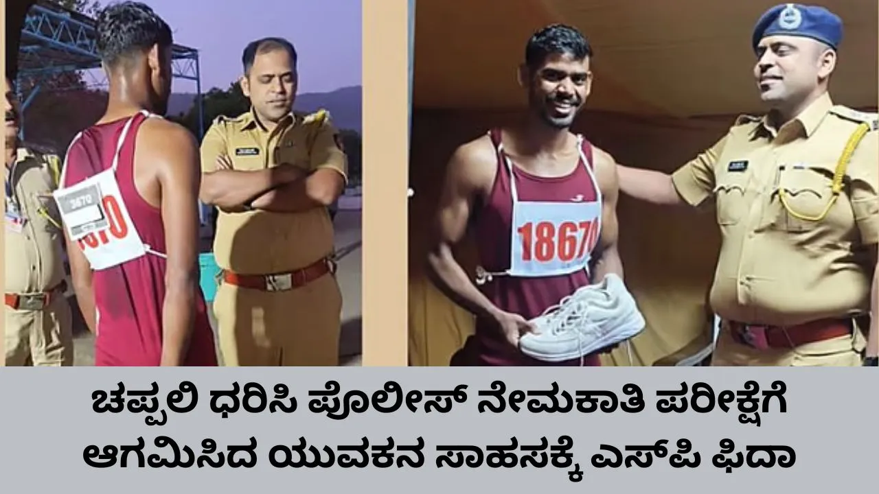 ಚಪ್ಪಲಿ ಧರಿಸಿ ಪೊಲೀಸ್ ದೈಹಿಕ ಪರೀಕ್ಷೆಗೆ ಆಗಮಿಸಿದ ಯುವಕ; ಆತನ ಛಲಕ್ಕೆ ಮನಸೋತು ಶೂ ಉಡುಗೊರೆ ನೀಡಿದ ಎಸ್ಪಿ