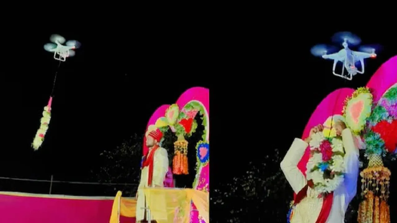 ವರಮಾಲೆ ಹಾಕಲು ಹೋಗಿ ಡ್ರೋನ್ ಕೆಳಗೆ ಬಿದ್ದ ತಮಾಷೆಯ ದೃಶ್ಯ ಇಲ್ಲಿದೆ ನೋಡಿ