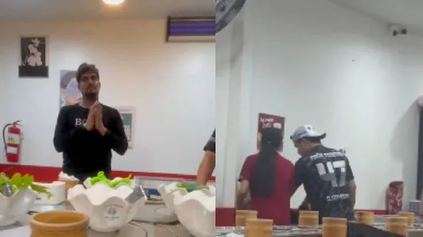 ಯುವಕ ರೆಸ್ಟೋರೆಂಟ್ ಒಳಗೆ ಪದೇ ಪದೆ ಬಂದು ಹೋಗುತ್ತಾ ಅಲ್ಲಿನ ಕೆಲಸಗಾರರಿಗೆ ತೊಂದರೆ ನೀಡುತ್ತಿದ್ದ ಎಂದು ಅಲ್ಲಿನ ಸಿಬ್ಬಂದಿ ದೂರಿದ್ದಾರೆ. ವಿಡಿಯೊದಲ್ಲಿ ಹಲವು ರೆಸ್ಟೋರೆಂಟ್ ಉದ್ಯೋಗಿಗಳು ಆ ವ್ಯಕ್ತಿಯ ಮೇಲೆ ದೈಹಿಕವಾಗಿ ಹಲ್ಲೆ ನಡೆಸುವುದನ್ನು ಕಾಣಬಹುದು. ಹಲ್ಲೆಗೆ ಒಳಗಾದ ಪ್ರವಾಸಿಗನು ಪೊಲೀಸರ ಮುಂದೆ ಅಳುತ್ತಾ ಸಹಾಯಕ್ಕಾಗಿ ವಿನಂತಿಸಿದ್ದಾನೆ.