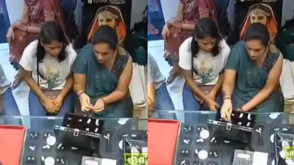 ಹಗಲು ಕಳ್ಳತನ ಮಾಡುವುದು ಎಂದರೆ ಖದೀಮರಿಗೆ ಯಾವುದೇ ಭಯವಿಲ್ಲ ಎಂದರ್ಥ. ಬೇರೊಬ್ಬರ ಕಣ್ಣಿಗೆ ಹೇಗೆ ಮಣ್ಣೆರಚಿ ಕಳ್ಳತನ ಮಾಡಲಾಗಿದೆ ಅನ್ನೋದನ್ನು ಈ ವಿಡಿಯೊದಲ್ಲಿ ನೋಡಬಹುದು. ಚಿನ್ನದ ಅಂಗಡಿಯಲ್ಲಿ ಗ್ರಾಹಕರು ಹೆಚ್ಚಿದ್ದರು. ಈ ವೇಳೆ ಇಬ್ಬರು ಮಹಿಳಾ ಖದೀಮರು ಬಂದು ಕುಳಿತಿರುವುದನ್ನು ವಿಡಿಯೊದಲ್ಲಿ ನೋಡಬಹುದು. ಸಿಬ್ಬಂದಿ ಅವರಿಗೆ ಚಿನ್ನದ ಉಂಗುರಗಳನ್ನು ತೋರಿಸುತ್ತಿರುವುದನ್ನು ವಿಡಿಯೊದಲ್ಲಿ ಗಮನಿಸಬಹುದು.