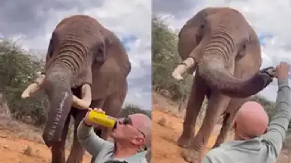 ಆನೆಯ ಸೊಂಡಿಲಿಗೆ ಬಿಯರ್ ಸುರಿದ ವ್ಯಕ್ತಿ