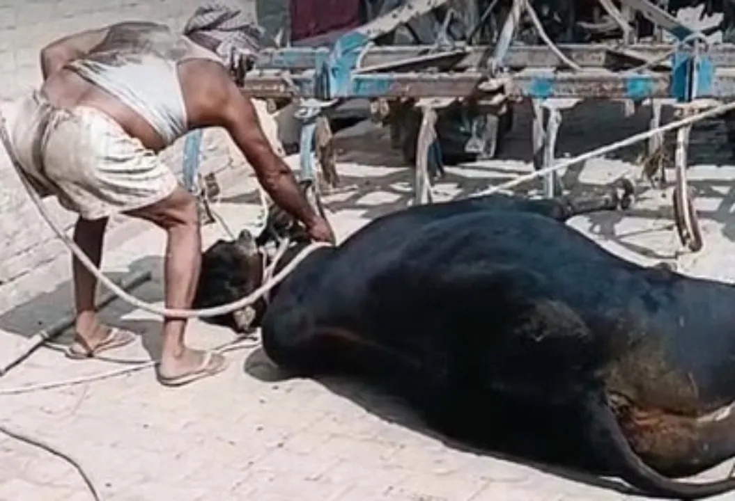 ಉತ್ತರ ಪ್ರದೇಶದ ಶಹಜಹಾನ್ಪುರದಲ್ಲಿ ಹೋರಿಯೊಂದರ ಕುತ್ತಿಗೆಗೆ ಹಗ್ಗ ಬಿಗಿದು ಅದನ್ನು ಟ್ರ್ಯಾಕ್ಟರ್ ಗೆ ಕಟ್ಟಿ ಎಳೆದು ಸಾಯುಸುತ್ತಿರುವ ಭಯಾನಕ ಘಟನೆಯ ವಿಡಿಯೋದಲ್ಲಿ ಅಸಹಾಯಕ ಹೋರಿಯು ಹಗ್ಗದಿಂದ ತನ್ನನ್ನು ತಾನು ಬಿಡಿಸಿಕೊಳ್ಳಲು ಪ್ರಯತ್ನಿಸುತ್ತಿರುವುದು ಕೊನೆಗೆ ನೆಲಕ್ಕೆ ಬಿದ್ದು ಸಾವನ್ನಪ್ಪಿದ ದೃಶ್ಯಗಳನ್ನು ಕಾಣಬಹುದು. ಈ ಘಟನೆ ಶಹಜಹಾನ್ಪುರದ ಭೈನ್ಸಾಟಾ ಗ್ರಾಮದಲ್ಲಿ ನಡೆದಿದೆ ಎನ್ನಲಾಗಿದೆ. ದಾರಿ ತಪ್ಪಿ ಹೋಗುತ್ತಿದ್ದ ಹೋರಿಯನ್ನು ಹಿಡಿದು ಹಗ್ಗಗಳಿಂದ ಕಟ್ಟಿ ಟ್ರ್ಯಾಕ್ಟರ್ ಮೂಲಕ ಎಳೆಯಲು ಪ್ರಯತ್ನಿಸುತ್ತಿದ್ದಂತೆ ಹಗ್ಗ ಬಿಗಿಯಾಗಿ ಹೋರಿ ಉಸಿರುಗಟ್ಟಿ ಸಾವನ್ನಪ್ಪಿತು ಎನ್ನಲಾಗುತ್ತಿದೆ.