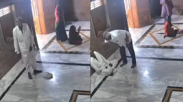 ದೇವಸ್ಥಾನದ ಒಳಗೆ ವೃದ್ಧ ಅಸ್ವಸ್ಥ; ವಿಡಿಯೊ ವೈರಲ್