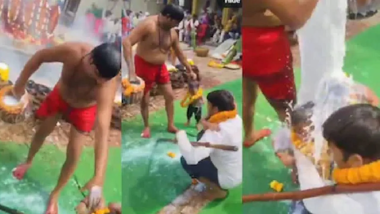 Viral News: ಅರ್ಚಕರೊಬ್ಬರು ಸಣ್ಣ ಮಕ್ಕಳ ಮೇಲೆ ಬಿಸಿ ಹಾಲು ಸುರಿದ ಘಟನೆವೊಂದು ನಡೆದಿದೆ. ಸದ್ಯ ಈ ದೃಶ್ಯವು ಮಕ್ಕಳ ಸುರಕ್ಷತೆ ಬಗ್ಗೆ ಕಳವಳ ಉಂಟು ಮಾಡುವಂತೆ ಮಾಡಿದೆ. ಇದೊಂದು ಧಾರ್ಮಿಕ ಆಚರಣೆಯ ಭಾಗವಗಿದ್ದರೂ ಮಕ್ಕಳ ಆರೋಗ್ಯದ ಬಗ್ಗೆ ಹಲವಾರು ಪ್ರಶ್ನೆ ಮಾಡಿದ್ದಾರೆ.