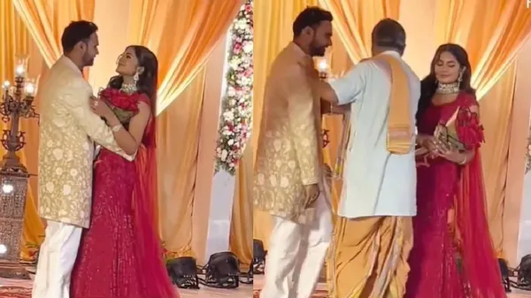 ಕೆಲವೇ ಸೆಕೆಂಡುಗಳ ನಂತರ, ಸಮಾರಂಭವನ್ನು ನಡೆಸುವ ಪುರೋಹಿತರು ಮಧ್ಯಪ್ರವೇಶಿಸಿ, ದಂಪತಿಗಳನ್ನು ದೈಹಿಕವಾಗಿ ಬೇರ್ಪಡಿಸಿದ್ದಾರೆ. ಮದುವೆಯ ವಿಧಿವಿಧಾನಗಳು ನಡೆಯುವ ಮುನ್ನ ಇಂತಹ ವರ್ತನೆ ಸರಿಯಲ್ಲ ಎಂದು ಫುಲ್ ಗರಂ ಆಗಿದ್ದಾರೆ. ಈ ಬಗ್ಗೆ ಆಕ್ಷೇಪ ವ್ಯಕ್ತಪಡಿಸಿದ ಅವರು, ವಿಡಿಯೋ ಚಿತ್ರೀಕರಿಸುತ್ತಿದ್ದ ಕ್ಯಾಮೆರಾಮನ್ಗಳಿಗೂ ರೆಕಾರ್ಡಿಂಗ್ ನಿಲ್ಲಿಸುವಂತೆ ಗದರಿಸಿದ್ದಾರೆ.