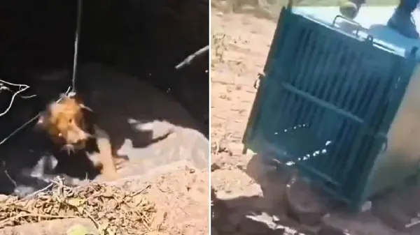 ಗುಜರಾತ್ನ ಉನಾ ತಾಲೂಕಿನ ನವಬಂದರ್ ಬಳಿ ಈ ಘಟನೆ ನಡೆದಿದೆ. ಸಿಂಹವೊಂದು ಆಕಸ್ಮಿಕವಾಗಿ ನೀರು ತುಂಬಿದ ಬಾವಿಗೆ ಬಿದ್ದಿತ್ತು. ಬಳಿಕ ಅರಣ್ಯ ಅಧಿಕಾರಿಗಳು ತ್ವರಿತ ಸಮಯ ಪ್ರಜ್ಞೆ ಮತ್ತು ಧೈರ್ಯದಿಂದ ಹಗ್ಗಗಳನ್ನು ಬಳಸಿ ಸಿಂಹವನ್ನು ರಕ್ಷಿಸಿದ್ದಾರೆ. ಸಿಂಹವನ್ನು ಪಂಜರದಲ್ಲಿ ಇರಿಸಿ ಜಸಂಧರ್ ಪ್ರಾಣಿ ರಕ್ಷಣಾ ಕೇಂದ್ರಕ್ಕೆ ಸ್ಥಳಾಂತರಿಸಲಾಯಿತು.