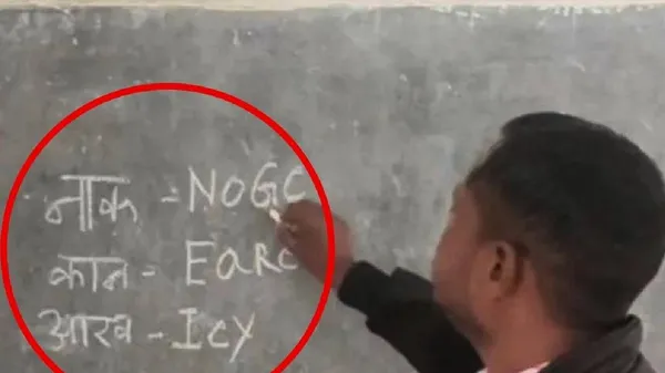 ಛತ್ತೀಸ್ಗಢ: ಕಳೆದ ಕೆಲವು ದಿನಗಳ ಹಿಂದಷ್ಟೇ ಶಾಲೆಯ ಶಿಕ್ಷಕರೊಬ್ಬರು ಮಕ್ಕಳಿಗೆ ತಪ್ಪಾಗಿ 'ಎಬಿಸಿಡಿ' ಹೇಳಿಕೊಟ್ಟಿರುವ ವಿಡಿಯೊ ವೈರಲ್ ಆಗಿತ್ತು. ಈ ದೃಶ್ಯ ಹಲವರ ನಗುವಿಗೆ ಕಾರಣ ವಾಗಿದ್ದು ಕೆಲವರು ಹಾಸ್ಯವಾಗಿ ಪರಿಗಣಿಸಿದರೆ, ಇನ್ನೂ ಕೆಲವರು ಮಕ್ಕಳ ಭವಿಷ್ಯದ ಬಗ್ಗೆ ಪ್ರಶ್ನೆ ಮಾಡಿದ್ದರು. ಇದೀಗ ಮತ್ತೊಮ್ಮೆ ಇಂತಹುದೇ ಘಟನೆಯೊಂದು ನಡೆದಿದ್ದು ಛತ್ತೀಸ್ಗಢದ ಬಲ ರಾಮಪುರ ಜಿಲ್ಲೆಯಲ್ಲಿ ಸಹಾಯಕ ಶಿಕ್ಷಕ ಮಕ್ಕಳಿಗೆ ಇಂಗ್ಲಿಷ್ ಪದಗಳನ್ನು ತಪ್ಪಾಗಿ ಕಲಿಸುತ್ತಿದ್ದ ವಿಡಿಯೋ ವೈರಲ್ (Viral Video) ಆಗಿದೆ. ಈ ವಿಚಾರ ಶಿಕ್ಷಣ ಅಧಿಕಾರಿಗೆ ತಲುಪಿದ ನಂತರ ಶಿಕ್ಷಕನನ್ನು ತಕ್ಷಣವೇ ಅಮಾನತುಗೊಳಿಸಲಾಗಿದೆ. ಈ ಘಟನೆ ಸರ್ಕಾರಿ ಶಾಲೆಗಳಲ್ಲಿನ ಶಿಕ್ಷಕರ ಅರ್ಹತೆ ಮತ್ತು ತರಬೇತಿಯ ಬಗ್ಗೆ ಗಂಭೀರ ಪ್ರಶ್ನೆಗಳನ್ನು ಹುಟ್ಟುಹಾಕಿದೆ.