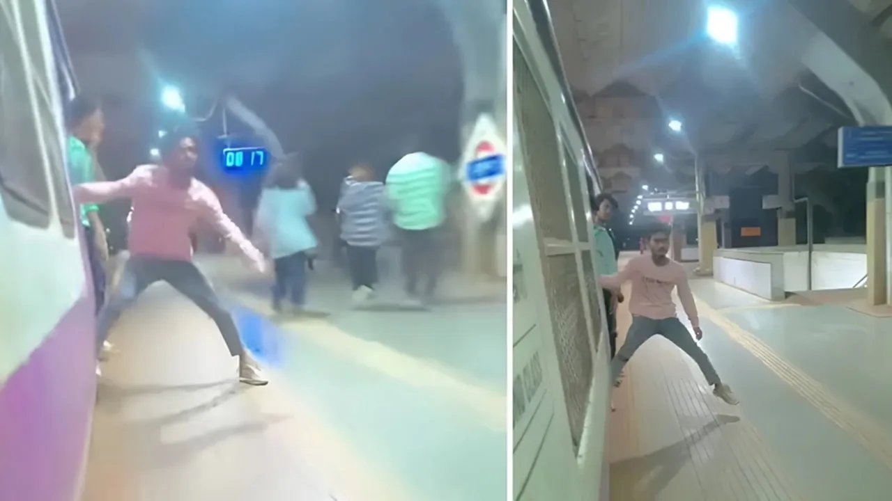 Teen Risks Life with Moving Train Stunt: ಯುವಕನೊಬ್ಬ ಚಲಿಸುತ್ತಿರುವ ರೈಲಿನಲ್ಲಿ ದುಸ್ಸಾಹಸ ಪ್ರದರ್ಶಿಸುತ್ತಿರುವ ವಿಡಿಯೊವೊಂದು ವೈರಲ್ ಆಗಿದೆ. ಅವನ ಒಂದು ಕಾಲು ರೈಲಿನ ಮೇಲೆ, ಇನ್ನೊಂದು ಕಾಲನ್ನು ಪ್ಲಾಟ್ಫಾರ್ಮ್ನಲ್ಲಿ ಎಳೆದಿದ್ದಾನೆ. ಜತೆಗೆ ಮಹಿಳೆಯೊಬ್ಬರ ಫೋನ್ ಕಸಿದುಕೊಳ್ಳಲೂ ಪ್ರಯತ್ನಿಸಿದ್ದಾನೆ.