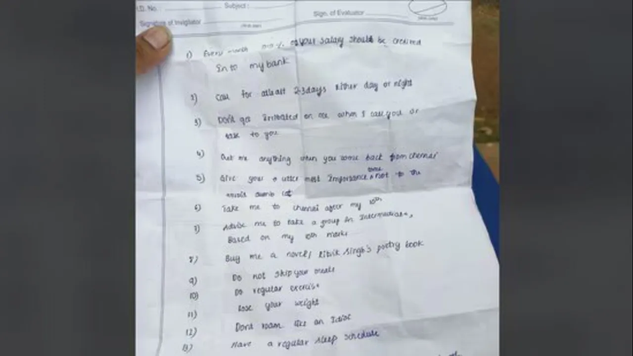 ತನ್ನ 10ನೇ ತರಗತಿ ಪರೀಕ್ಷೆಗಳು ಮುಗಿದ ಬಳಿಕ ತನ್ನನ್ನೊಮ್ಮೆ ಚೆನ್ನೈಗೆ ಕರೆದುಕೊಂಡು ಹೋಗುವಂತೆಯೂ ಆಕೆ ತನ್ನ ಅಣ್ಣನ ಬಳಿ ಡಿಮ್ಯಾಂಡ್ ಇಟ್ಟಿದ್ದಾಳೆ. ನನಗೊಂದು ಕಾದಂಬರಿ ಪುಸ್ತಕ/ರಿತ್ವಿಕ್ ಸಿಂಗ್ ನ ಕವನ ಪುಸ್ತಕವನ್ನು ತಂದುಕೊಡುವಂತೆಯೂ ಆಕೆ ಅಣ್ಣನಲ್ಲಿ ಬೇಡಿಕೆಯಿಟ್ಟಿದ್ದಾಳೆ.