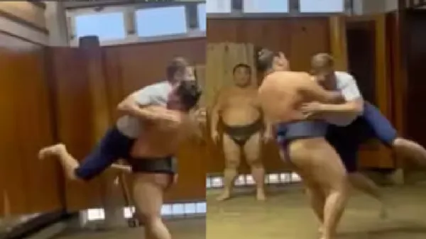 ಟೋಕಿಯೊ: ಅಮೆರಿಕ ಅಧ್ಯಕ್ಷ ಡೊನಾಲ್ಡ್ ಟ್ರಂಪ್ (Donald Trump) ಅವರ 41 ವರ್ಷದ ಪುತ್ರ ಎರಿಕ್ ಟ್ರಂಪ್, ಇತ್ತೀಚಿನ ಜಪಾನ್ ಪ್ರವಾಸದ ಸಂದರ್ಭದಲ್ಲಿ ಸುಮೋ ಕುಸ್ತಿ ಪ್ರಯತ್ನಿಸಿರುವ ವಿಡಿಯೊ ಸಾಮಾಜಿಕ ಮಾಧ್ಯಮದಲ್ಲಿ ವೈರಲ್ (Viral Video) ಆಗಿದೆ. ಮೆಟಾಪ್ಲಾನೆಟ್ ಜೊತೆಗಿನ ಷೇರುದಾರರ ಸಭೆಯಲ್ಲಿ ಪಾಲ್ಗೊಳುವ ಸಲುವಾಗಿ ಎರಿಕ್ ಟ್ರಂಪ್ ಅವರು ಟೋಕಿಯೊಗೆ ಆಗಮಿಸಿದ್ರು. ಬ್ಯುಸಿನೆಸ್ ಮೀಟ್ಗಾಗಿ ಜಪಾನ್ಗೆ ತೆರಳಿದ ಅವರು ವಿಶಿಷ್ಟವಾದ ಜಪಾನೀಸ್ ಸಂಸ್ಕೃತಿಯ ಅನುಭವವನ್ನು ತಿಳಿಯುವುದಕ್ಕಾಗಿ ಸಮಯವನ್ನು ಮೀಸಲಿಟ್ಟರು. ಸುಮೋ ಶ್ರೇಷ್ಠರ ವಿರುದ್ಧ ಎಲಿಕ್ ಟ್ರಂಕ್ ಕಾಳಗಕ್ಕೆ ಮುಂದಾದ್ರು.