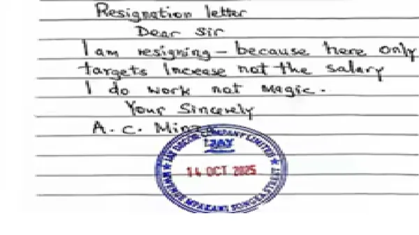 ಪತ್ರವು ಸಂಕ್ಷಿಪ್ತವಾಗಿದ್ದರೂ ಸ್ಪಷ್ಟವಾಗಿದೆ. ಅವರ ರಾಜೀನಾಮೆಗೆ ಕಾರಣವನ್ನು ಸ್ಪಷ್ಟವಾಗಿ ಉಲ್ಲೇಖಿಸಲಾಗಿದೆ. ಈ ರಾಜೀನಾಮೆ ಪತ್ರ ಈಗ ವೈರಲ್ ಆಗಿದೆ. ಅದರಲ್ಲಿ ಅವರು ಹೀಗೆ ಬರೆದಿದ್ದಾರೆ: ಈ ಕಂಪನಿಯಲ್ಲಿ ಸಂಬಳ ಹೆಚ್ಚಳದ ಗುರಿ ಮಾತ್ರ ಇದೆ, ನಾನು ರಾಜೀನಾಮೆ ನೀಡುತ್ತಿದ್ದೇನೆ. ನಾನು ಕೆಲಸ ಮಾಡುತ್ತೇನೆ, ನಾನು ಮ್ಯಾಜಿಕ್ ಮಾಡುವುದಿಲ್ಲ ಎಂದು ಪತ್ರದಲ್ಲಿ ತಿಳಿಸಿದ್ದಾರೆ. ಆ ಪತ್ರವು ಕಂಪನಿಯ ಅಧಿಕೃತ ಮುದ್ರೆಯನ್ನು ಸಹ ಹೊಂದಿದೆ.