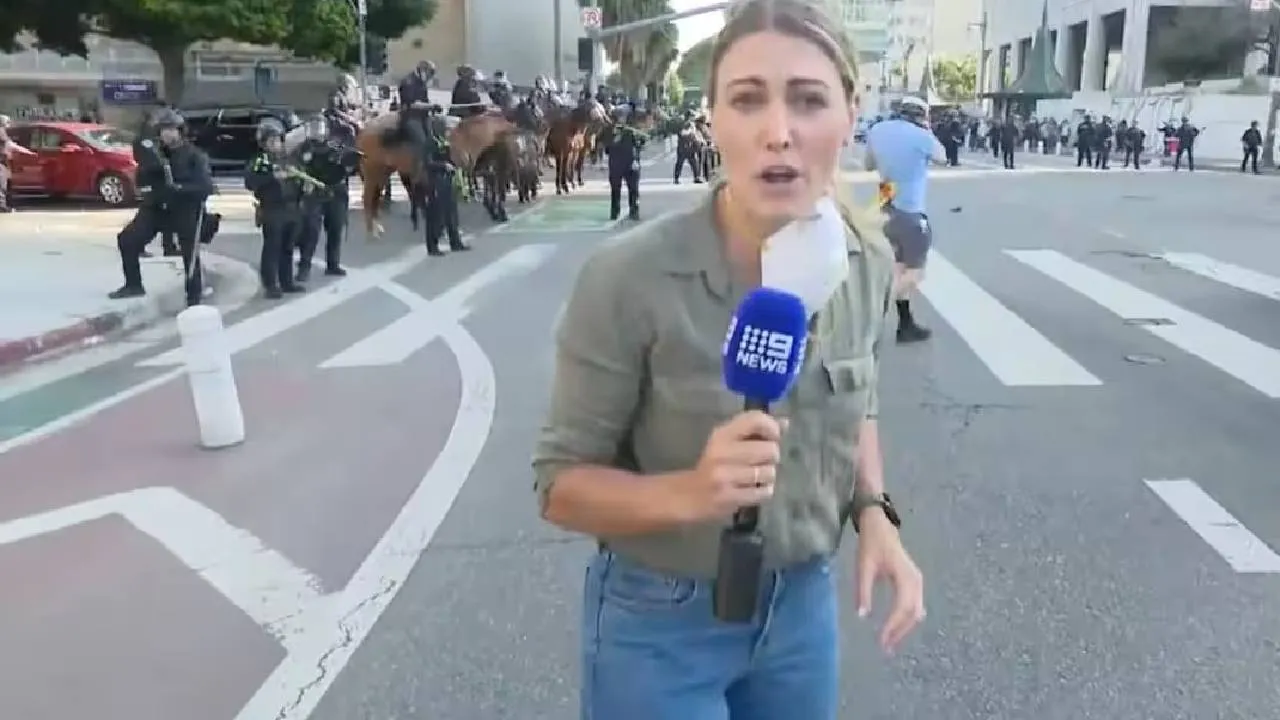 ಲಾಸ್ ಏಂಜಲೀಸ್ನಲ್ಲಿ ನಡೆದ ಪ್ರತಿಭಟನೆ ಬಗ್ಗೆ ವರದಿ ಮಾಡುವಾಗ ಆಸ್ಟ್ರೇಲಿಯಾದ ನೈನ್ ನ್ಯೂಸ್ ವರದಿಗಾರ್ತಿ ಲಾರೆನ್ ಟೊಮಾಸಿಯಳ ಮೇಲೆ ರಬ್ಬರ್ ಗುಂಡನ್ನು ಹಾರಿಸಲಾಗಿದೆ. ಇದರ ಪರಿಣಾಮ ಅವಳ ಕಾಲಿಗೆ ಗುಂಡು ತಗುಲಿದೆಯಂತೆ.ಈ ಸುದ್ದಿ ಈಗ ಸೋಶಿಯಲ್ ಮೀಡಿಯಾದಲ್ಲಿ ವೈರಲ್(Viral Video)ಆಗಿದೆ.
