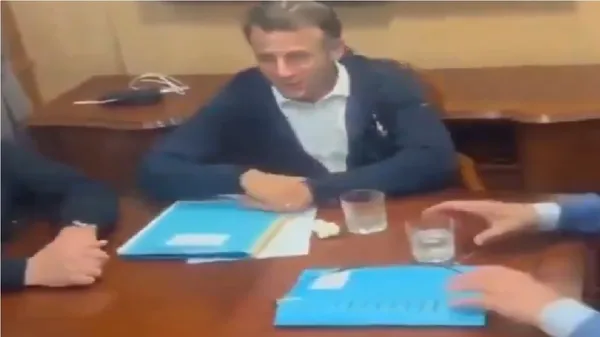 ಫ್ರಾನ್ಸ್ ಅಧ್ಯಕ್ಷರಾದ ಎಮ್ಯಾನುಯೆಲ್ ಮ್ಯಾಕ್ರನ್ ಅವರ ವೈರಲ್ ವಿಡಿಯೊದಲ್ಲಿ ಜರ್ಮನಿಯ ಚಾನ್ಸೆಲರ್ ಫ್ರೆಡ್ರಿಕ್ ಮೆರ್ಜ್ ಮತ್ತು ಯುಕೆ ಪ್ರಧಾನಿ ಕೀರ್ ಸ್ಟಾರ್ಮರ್ ಅವರೊಂದಿಗೆ ಟೇಬಲ್ ಮೇಲೆ ಕುಳಿತಿರುವುದನ್ನು ಕಾಣಬಹುದು. ಅಲ್ಲಿ ಬಿಳಿ ಬಣ್ಣದ ಪುಡಿಯ ಸಣ್ಣ ಪ್ಯಾಕೆಟ್ ಮತ್ತು ಲೋಹದ ಚಮಚವು ಇದೆ. ಮಾಧ್ಯಮದವರು ಇವರ ಕೋಣೆ ಪ್ರವೇಶಿಸಿದಾಗ ಮ್ಯಾಕ್ರನ್ ಪ್ಯಾಕೆಟ್ ಗಳನ್ನು ತಮ್ಮ ಜೇಬಿನಲ್ಲಿಟ್ಟಿದ್ದಾರೆ ಮತ್ತು ಮೆರ್ಜ್ ಅವರು ಚಮಚವನ್ನು ಕೈಯಲ್ಲಿ ಮರೆಯಾಗಿ ಹಿಡಿದಿದ್ದಾರೆ.