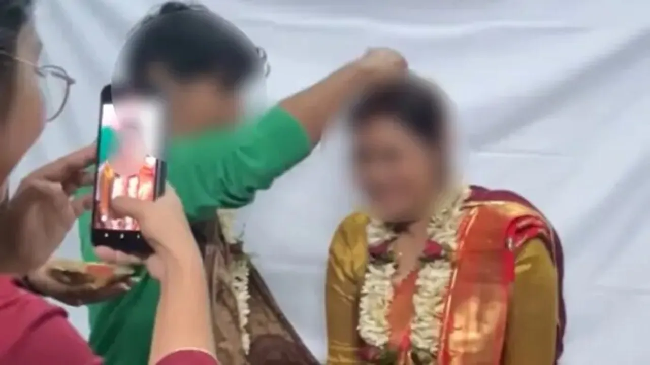 ಪಶ್ವಿಮ ಬಂಗಾಲದ ಹರಿಂಘಟಾದಲ್ಲಿರುವ ಮೌಲಾನಾ ಅಬ್ದುಲ್ ಕಲಾಂ ಆಝಾದ್ ತಂತ್ರಜ್ಞಾನ ಕಾಲೇಜಿನಲ್ಲಿ (MAKAUT) ಈ ಘಟನೆ ನಡೆದಿದೆ. ಈ ಘಟನೆಯ ವಿಡಿಯೊ ಇದೀಗ ಎಲ್ಲೆಡೆ ಸದ್ದು ಮಾಡುತ್ತಿದೆ. ಈ ವಿಡಿಯೊದಲ್ಲಿರುವಂತೆ ಅಪ್ಲೈಡ್ ಸೈಕಾಲಜಿ ವಿಭಾಗದ ಸಿಬ್ಬಂದಿಯೊಬ್ಬರು ಮದುಮಗಳಂತೆ ಸಿಂಗರಿಸಿಕೊಂಡಿರುವುದನ್ನು ಕಾಣಬಹುದು ಮತ್ತು ಯುವಕನೊಬ್ಬ ಹಾರಗಳನ್ನು ಬದಲಾಯಿಸಿಕೊಂಡು, ವಧುವಿನ ಹಣೆಗೆ ಸಿಂಧೂರವನ್ನು ಇಡುತ್ತಿರುವುದನ್ನು ಕಾಣಬಹುದಾಗಿದೆ. ಮಾತ್ರವಲ್ಲದೇ ಕೈಬರಹದ ಪ್ರಮಾಣ ಪತ್ರವೊಂದಕ್ಕೆ ಮೂವರು ಸಾಕ್ಷಿಗಳು ಸಹಿ ಹಾಕಿದ್ದಾರೆ. ಇದಕ್ಕೆ ಆ ಪ್ರೊಫೆಸರ್ ಮತ್ತು ವಿದ್ಯಾರ್ಥಿ ಸಹ ಸಹಿ ಮಾಡಿದ್ದಾರೆ. ಈ ಪ್ರಮಾಣ ಪತ್ರದ ಪ್ರತಿಯೂ ಸಹ ಇದೀಗ ಆನ್ಲೈನ್ನಲ್ಲಿ ಹರಿದಾಡುತ್ತಿದೆ.