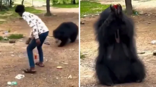 ಸಾಮಾಜಿಕ ಮಾಧ್ಯಮದಲ್ಲಿ ವೈರಲ್ ಆಗಿರುವ ವಿಡಿಯೊದಲ್ಲಿ, ಯುವಕನೊಬ್ಬ ತಂಪು ಪಾನೀಯದ ಬಾಟಲಿಯನ್ನು ಹಿಡಿದು ಕರಡಿಯ ಕಡೆಗೆ ನಡೆದುಕೊಂಡು ಹೋಗುತ್ತಿರುವುದನ್ನು ಕಾಣಬಹುದು. ನಂತರ ಅವನು ಬಾಟಲಿಯನ್ನು ಕರಡಿಯ ಮುಂದೆ ಇರಿಸಿ ಹಿಂತಿರುಗಿ, ಕ್ಯಾಮರಾವನ್ನು ನೋಡುತ್ತಾ ನಗುತ್ತಾನೆ. ನಂತರ ಕರಡಿ ಹತ್ತಿರ ಬಂದು ಬಾಟಲಿಯನ್ನು ಎತ್ತಿ ತಂಪು ಪಾನೀಯವನ್ನು ಸೇವಿಸಲು ಪ್ರಾರಂಭಿಸುತ್ತದೆ. ಕರಡಿಯು ಬಾಟಲಿಯನ್ನು ಕೆಳಗಿಳಿಸುವ ಮೊದಲು ಅದನ್ನು ಖಾಲಿ ಮಾಡುವುದನ್ನು ಕಾಣಬಹುದು.