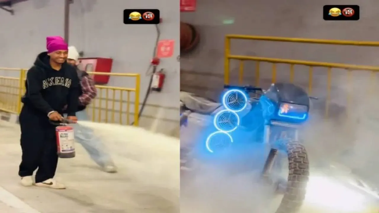 ವೈರಲ್ ಆದ ವಿಡಿಯೊದಲ್ಲಿ ವ್ಯಕ್ತಿಯೊಬ್ಬ ಲೈಟ್ಗಳಿಂದ ಅಲಂಕರಿಸಿದ ಬೈಕುಗಳ ಮೇಲೆ ಬೆಂಕಿ ಶಮನಕ್ಕೆ ಬಳಸುವ ಸ್ಪ್ರೇ ಮಾಡುತ್ತಿರುವುದು ಮತ್ತು ಇನ್ನೊಬ್ಬ ಅವನ ಹಿಂದೆ ನಿಂತು ಅವನನ್ನು ಬೆಂಬಲಿಸುತ್ತಾ ಈ ಕೃತ್ಯವನ್ನು ಆನಂದಿಸಿದ್ದಾನೆ. ಅವರ ಈ ಕೆಲಸದಿಂದ ಸುರಂಗದೊಳಗೆ ದಟ್ಟವಾದ ಹೊಗೆ ತುಂಬಿಕೊಂಡಿತ್ತು.