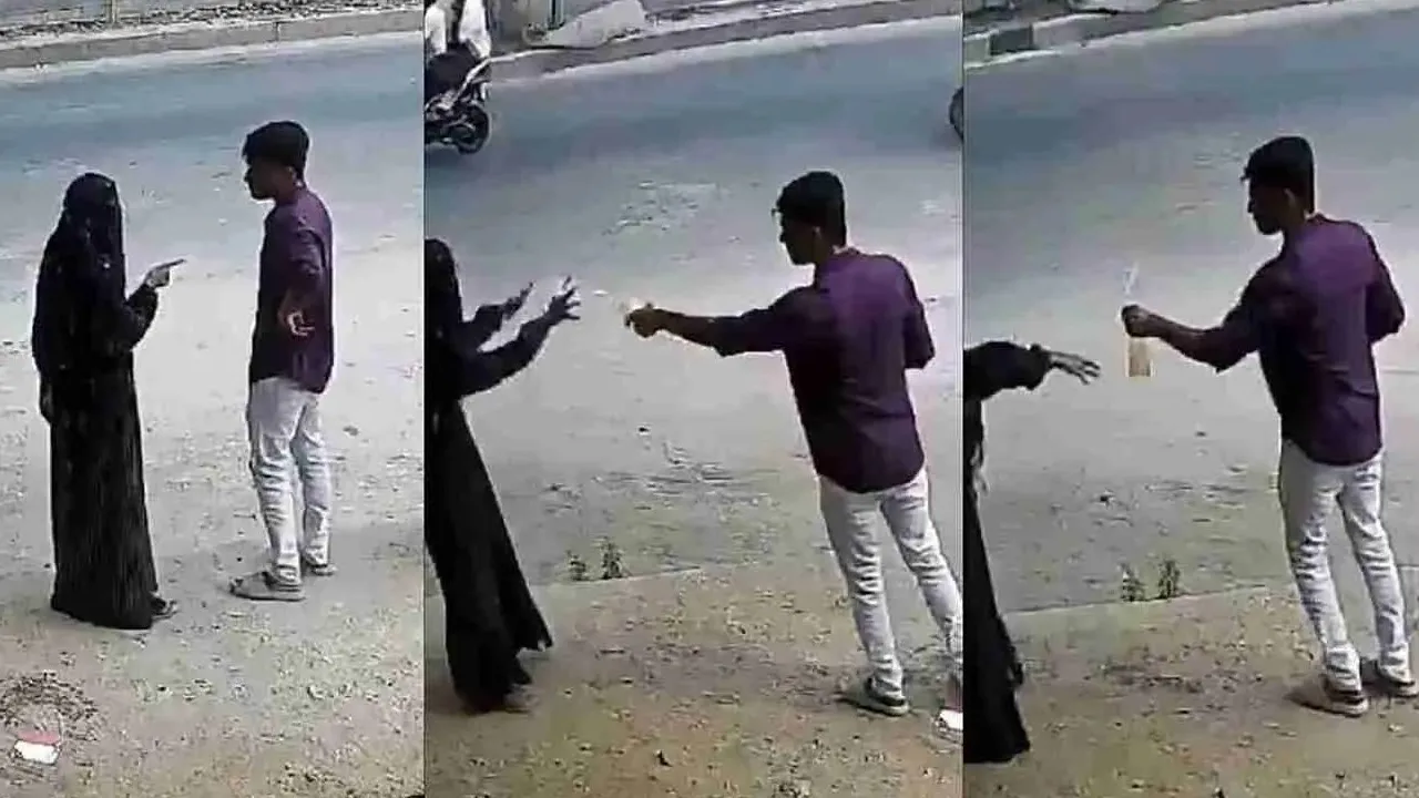 ಹೈದರಾಬಾದ್: ವ್ಯಕ್ತಿಯೊಬ್ಬ ಹಾಡಹಗಲೇ ಬುರ್ಖಾ ಧರಿಸಿದ ಯುವತಿಯ ಮೇಲೆ ಪೆಟ್ರೋಲ್ ಸುರಿದು ಬೆಂಕಿ ಹಚ್ಚುವುದಾಗಿ ಬೆದರಿಕೆ ಹಾಕಿದ ಆಘಾತಕಾರಿ ಘಟನೆ ನಡೆದಿದೆ. ತೆಲಂಗಾಣದ ಹುಜೂರ್ನಗರ ಪ್ರದೇಶದಲ್ಲಿ ಅಳವಡಿಸಲಾದ ಸಿಸಿಟಿವಿ ಕ್ಯಾಮೆರಾದಲ್ಲಿ ಯುವಕ ಯುವತಿಯ ಮೇಲೆ ಪೆಟ್ರೋಲ್ ಸುರಿದು ಬೀದಿಯಲ್ಲಿ ಗಲಾಟೆ ಮಾಡುವ ದೃಶ್ಯ ರೆಕಾರ್ಡ್ ಆಗಿ ಸೋಶಿಯಲ್ ಮೀಡಿಯಾದಲ್ಲಿ ವೈರಲ್(Viral Video) ಆಗಿದೆ.
