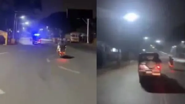 ಈ ಘಟನೆ ಮೈಸೂರಿನ ರಸ್ತೆಯೊಂದರಲ್ಲಿ ರಾತ್ರಿ ನಡೆದಿರುವುದಾಗಿ ವರದಿಯಾಗಿದೆ. ವೀಡಿಯೊ ದಲ್ಲಿ, ಇಬ್ಬರು ಯುವಕರು ಮುಂಭಾಗದ ಟೈರ್ ಅನ್ನು ನೆಲದಿಂದ ಎತ್ತಿ ಸ್ಕೂಟರ್ ಸವಾರಿ ಮಾಡುತ್ತಾ ವೀಲಿಂಗ್ ಮಾಡಿದ್ದಾರೆ. ಅವರು ಹಲವಾರು ಮೀಟರ್ಗಳವರೆಗೆ ಅದೇ ರೀತಿಯಾಗಿ ಸವಾರಿ ಮಾಡುವುದನ್ನು ಮುಂದುವರಿಸುತ್ತಾರೆ. ಅಚ್ಚರಿಯ ವಿಚಾರ ಏನಂದ್ರೆ ಇವರು ಈ ಸಾಹಸವನ್ನು ಮಾಡುತ್ತಿರುವಾಗಲೇ ಪಕ್ಕದಲ್ಲಿ ಪೊಲೀಸ್ ಜೀಪ್ ಸಾಗುತ್ತಿರುತ್ತದೆ.