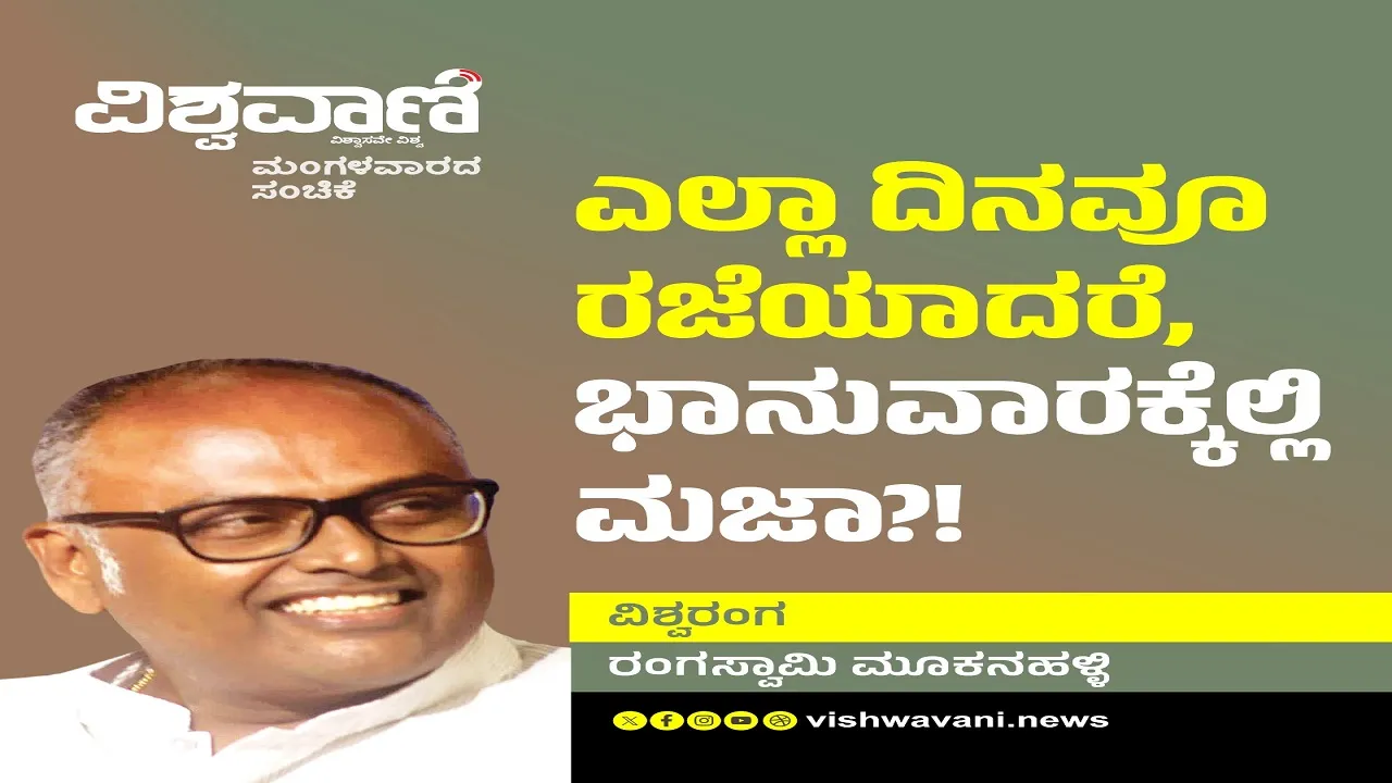 Rangaswamy Mookanahalli Column: ದಿನವೂ ರಜೆಯಾದರೆ, ಭಾನುವಾರಕ್ಕೆಲ್ಲಿ ಮಜಾ ? !