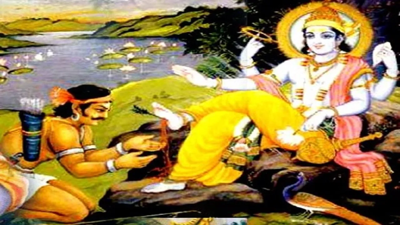 ಆಹಾ! ಈ ದಿನ ನನಗೆ ಒಳ್ಳೆಯ ಬೇಟೆ ಸಿಗುತ್ತಿದೆ ಎಂದು ಭಾವಿಸಿದ ಆತ. ತಡ ಮಾಡದೆ ಅವನು ತನ್ನ ಬಾಣವನ್ನು ಪ್ರಯೋಗ ಮಾಡಿಯೇ ಬಿಟ್ಟ. ನಂತರ ತನ್ನ ಬೇಟೆ ಎಲ್ಲಿ ಬಿದ್ದಿದೆ ಎಂದು ಅರಸುತ್ತಾ ಬಂದಾಗ ಅಲ್ಲಿ ಬಾಣ ಕೃಷ್ಣನ ಪಾದಕ್ಕೆ ತಾಕಿರುವುದನ್ನು ನೋಡಿ ಭಯದಿಂದ ಗಡಗಡ ನಡುಗ ತೊಡಗಿದನು.