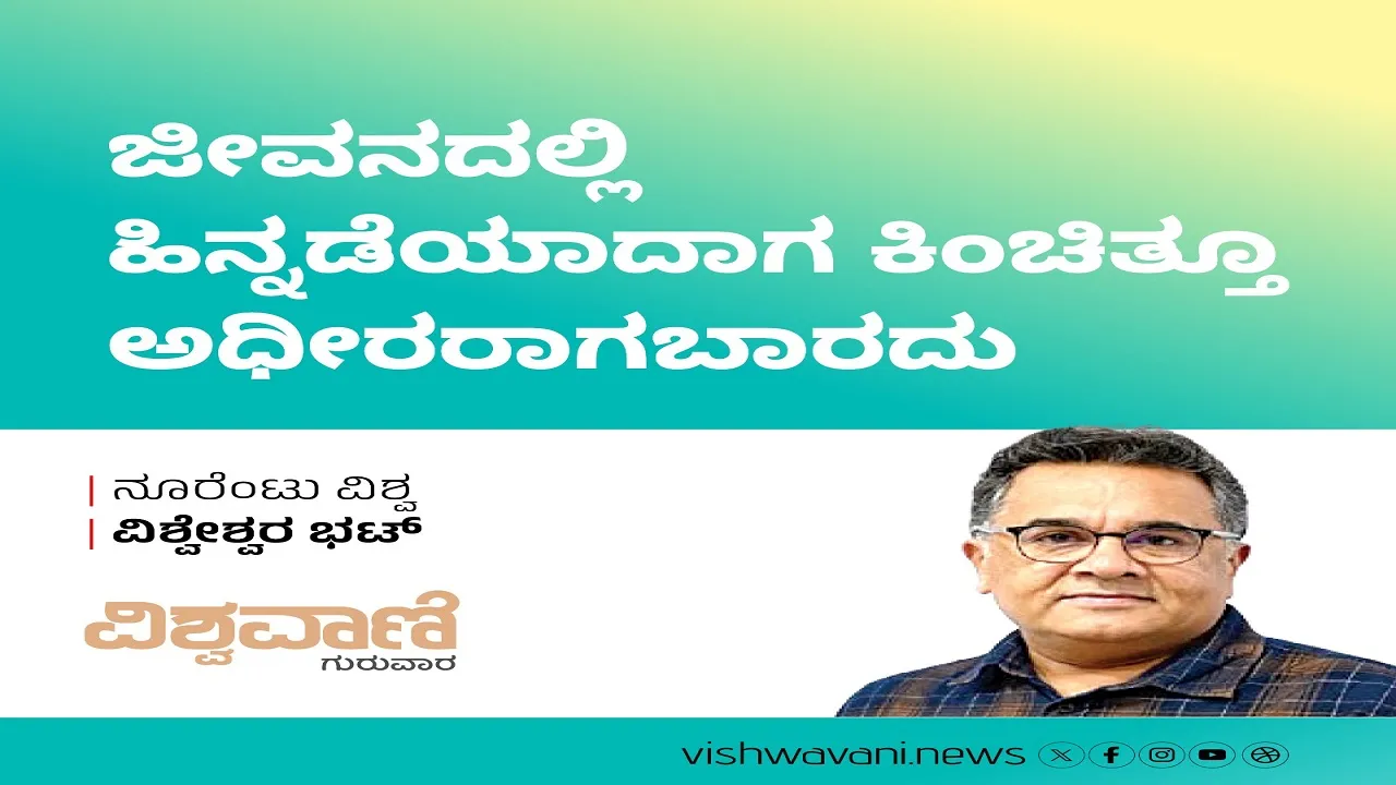 Vishweshwar Bhat Column: ಜೀವನದಲ್ಲಿ ಹಿನ್ನಡೆಯಾದಾಗ ಕಿಂಚಿತ್ತೂ ಅಧೀರರಾಗಬಾರದು