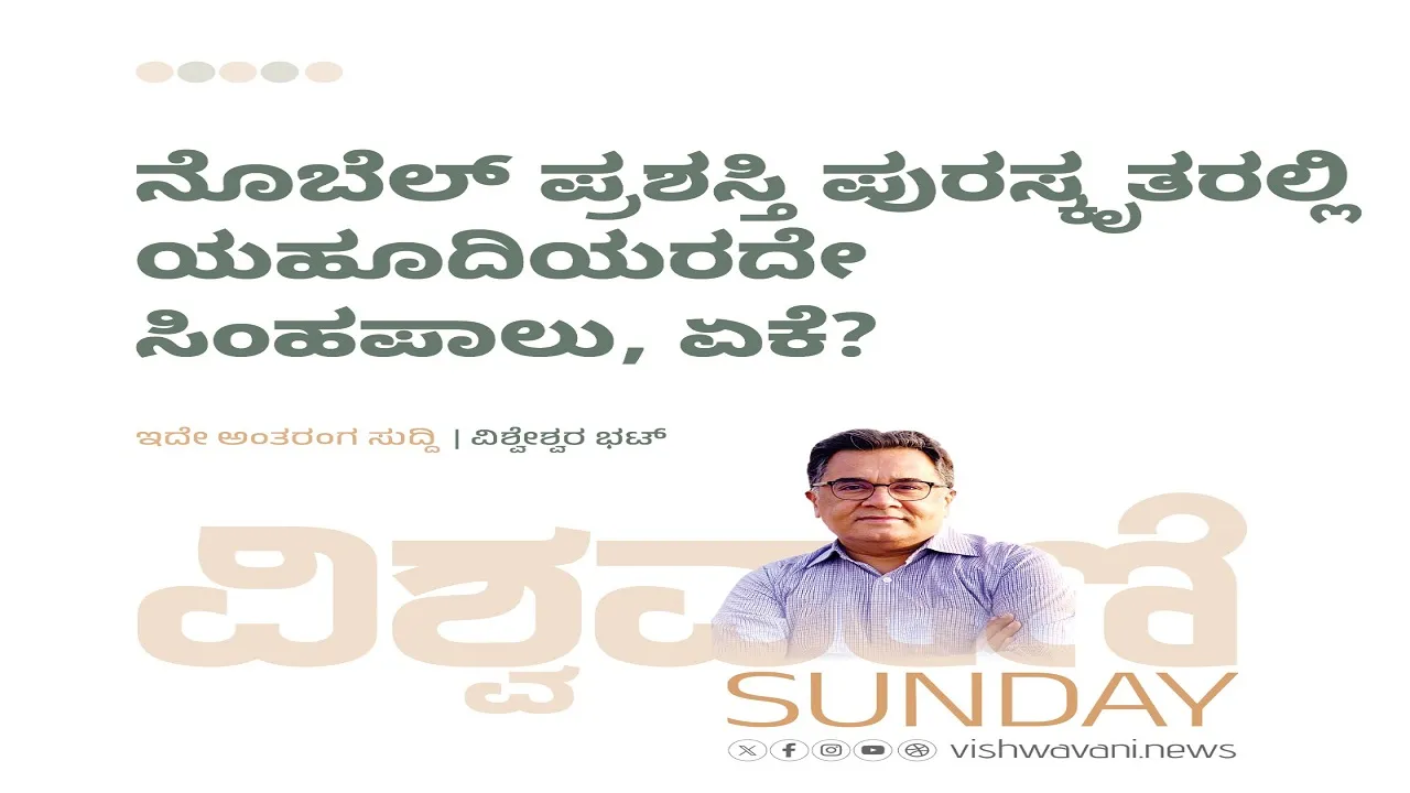 Vishweshwar Bhat Column: ನೊಬೆಲ್ ಪ್ರಶಸ್ತಿ ಪುರಸ್ಕೃತರಲ್ಲಿ ಯಹೂದಿಯರದೇ ಸಿಂಹಪಾಲು, ಏಕೆ ?
