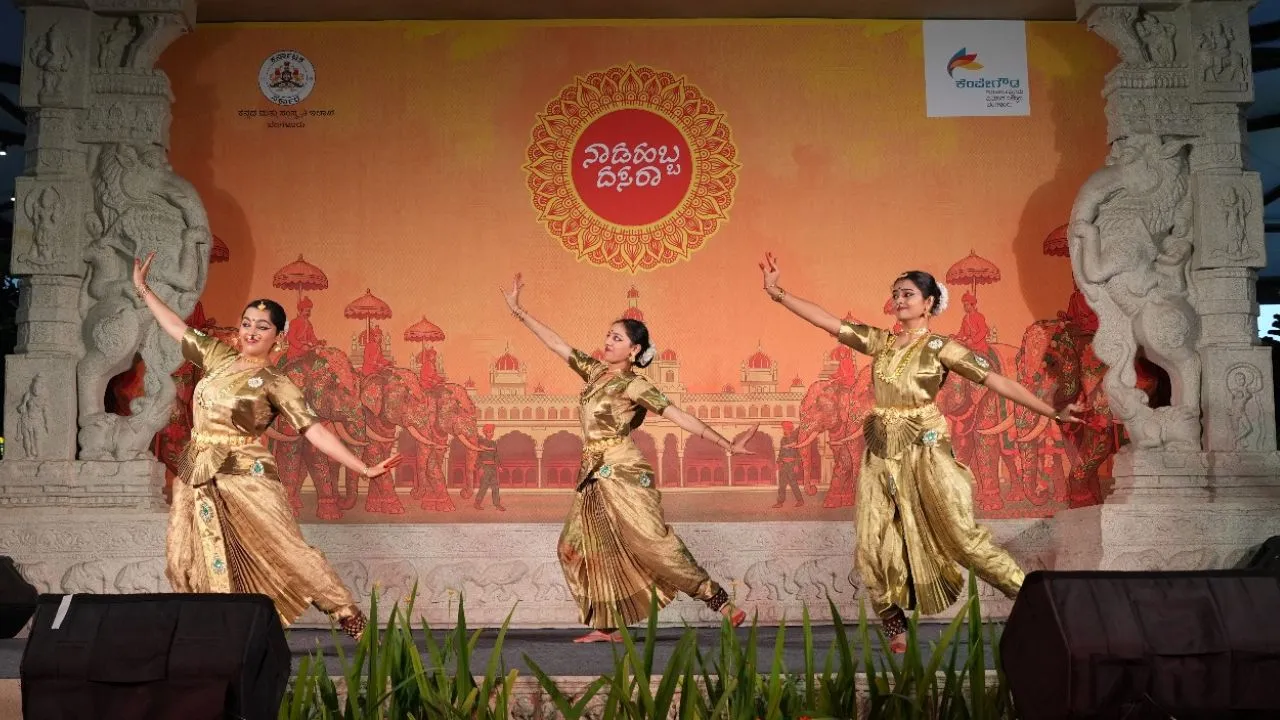 ನಾಡಹಬ್ಬ ದಸರಾ ಆಚರಣೆಯು ಕಣ್ಮನ ಸೆಳೆಯುವ ಜಾನಪದ ಕಲಾ ಪ್ರದರ್ಶನಗಳ ಮೂಲಕ ಭವ್ಯವಾಗಿ ಪ್ರಾರಂಭಗೊಂಡಿತು. ವೀರಾವೇಶಭರಿತ ಡೊಳ್ಳು ಕುಣಿತದ ಲಯಬದ್ಧ ಸದ್ದು ಮತ್ತು ಕಲಾವಿದರ ಶಕ್ತಿಪೂರ್ಣ ಹೆಜ್ಜೆಗಳು ವೀಕ್ಷಕರನ್ನು ರೋಮಾಂಚನಗೊಳಿಸಿದರೆ, ಬೃಹತ್ ಗಾತ್ರದ ಗಾರುಡಿ ಗೊಂಬೆಗಳ ನೃತ್ಯವು ಮಕ್ಕಳಿಂದ ಹಿಡಿದು ಹಿರಿಯರವರೆಗೆ ಎಲ್ಲರ ಗಮನ ಸೆಳೆಯಿತು. ಇದರ ಜತೆಗೆ, ಗ್ರಾಮೀಣ ಸಂಸ್ಕೃತಿಯ ಸೊಗಡನ್ನು ಬಿಂಬಿಸುವ ಬೇಡರ ನೃತ್ಯ ಮತ್ತು ತಮಟೆ ವಾದ್ಯಗಳ ಪ್ರದರ್ಶನಗಳು ನಡೆದವು.